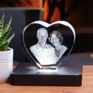 Unsere 3D Glasfotos sind in vier eleganten Formen erhältlich: "Eisberg", "Quader", "Herz" und "Precious". Jede Form gibt es in verschiedenen Größen, sodass Du genau das passende Format für Deine Erinnerungen findest. Alles, was Du benötigst, ist ein einfaches Foto. Unsere erfahrenen Grafiker verwandeln es mit einer speziell entwickelten Software in ein detailreiches 3D Foto in Glas.
